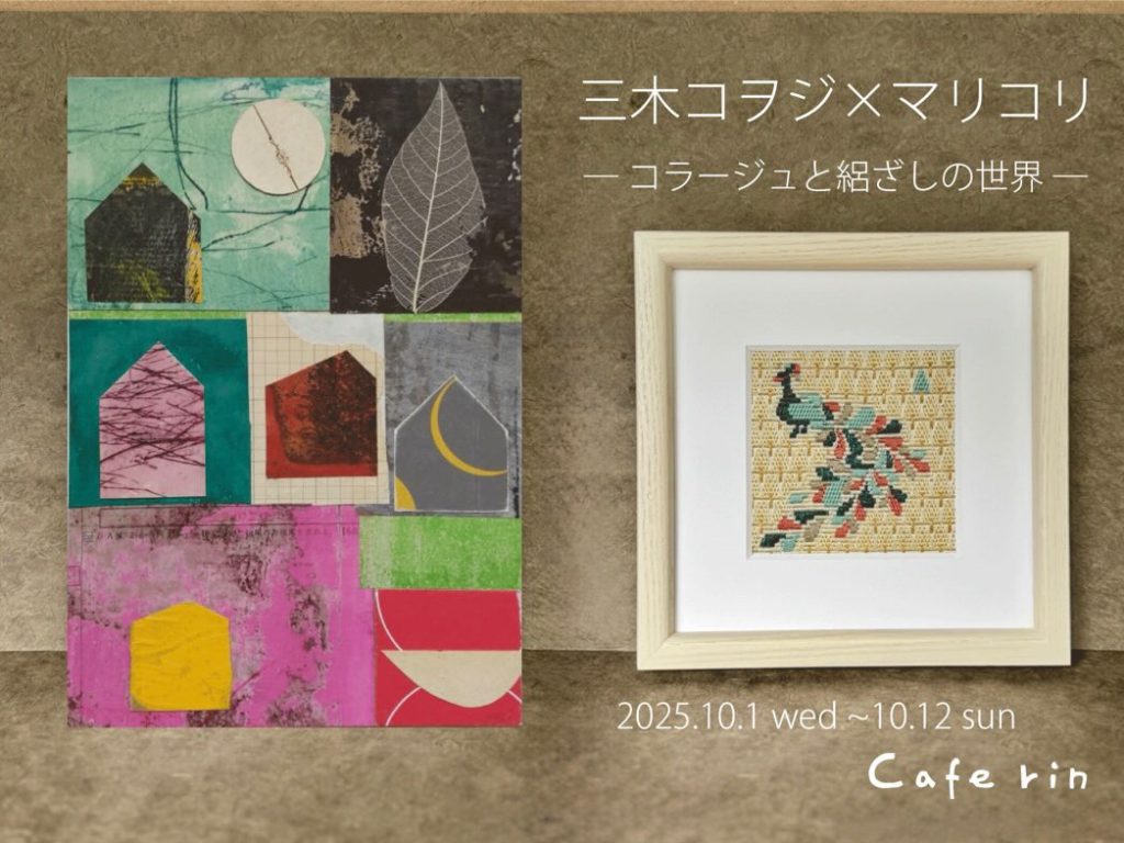 明日10/1より八王子Cafe rinさんにて コラージュ作家三木コヲジさんとの作品展が始まります。